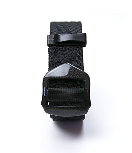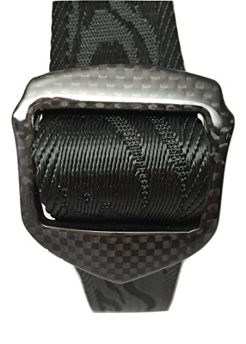 100% carbon fiber belt buckle, metal free. Stronger than steel and lighter than aluminum. 38mm width belt. Cruelty free Eco friendly. No animal is harmed in making this belt.