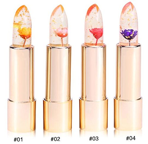 Color : included #1#2 #3 #4 Barbie Doll Powder Effect: Color-changing by temperature. Type: Lipstick Texture: paste Shelf life:3 years Want to be a make up talent? If you have it, it will come true. It is absolutely safe for you to use them. Please Note: that due to lighting effect and computer color, the actual colors may be slightly different from the picture Ingredients:candelilla resin,cocoa butter,beeswax,olive oil,citric acid,plant extracts,stearyl alcohol,grape seed oil,lavender oil,etc.(4 kinds of Dried flowers in paste) Benefits:moist lips,prevent chapped lips,Lips Care,healthy and safe,color is not easy to fade Notice: that Four out of the color change color are similar very close color , but different flowers inside .The color will different in different temperature . so everyone has own exclusive lip color.