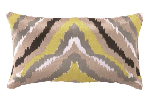 Trina Turk Ikat Yellow Embroidered Decorative Pillow, 20 by 12-Inch, Black/Yellow