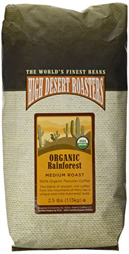 high desert roasters organic whole beans, 2.5 lbs. peruvian, medium roast.