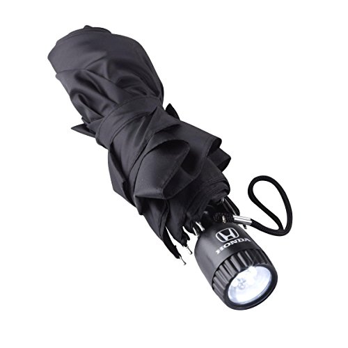 Studio : Honda Publisher : Honda Binding : Misc. Product Description Compact 39" arc umbrella doubles as flashlight with six LEDs in handle. Four white LEDs; two red LEDs for emergency flashing; includes button cell batteries and pouch with wrist strap. 1-1/2"x10-1/2", closed. Import. Black. Screenprint. 0