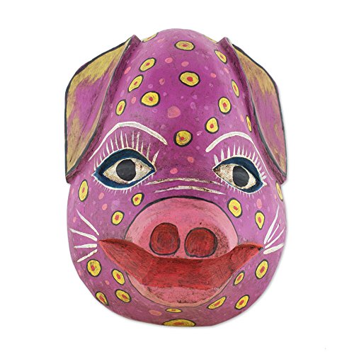 NOVICA 'Pink Pig' Wood Mask