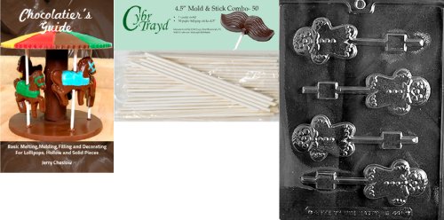 Cybrtrayd 45St50Bk-C441 'Gingerbread Man Lolly' Christmas Chocolate Candy Mold with 50 4.5-Inch Lollipop Sticks and Chocolatier's Guide