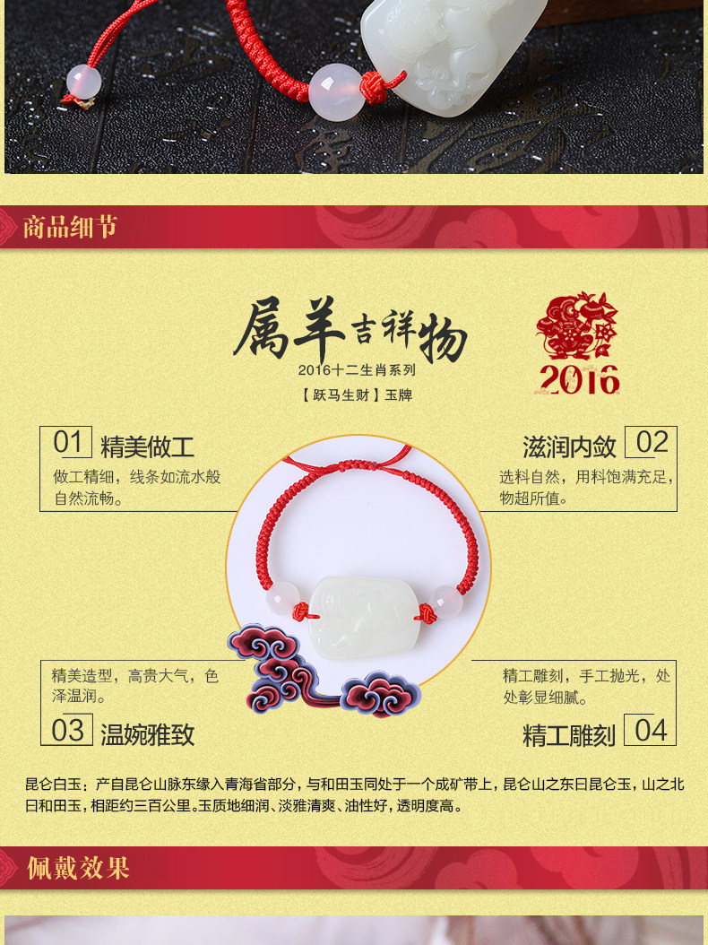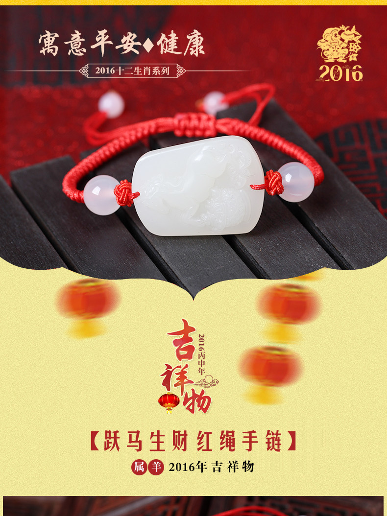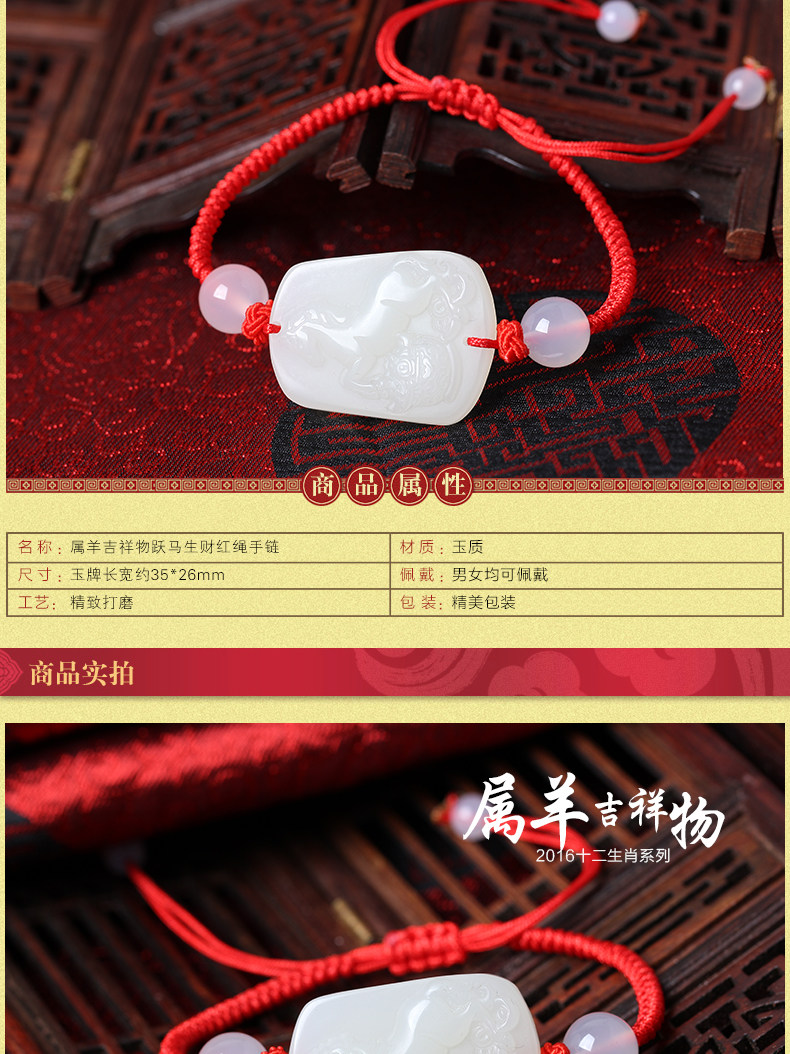 开光十二生肖属羊吉祥物跃马生财玉手链平安项坠礼物