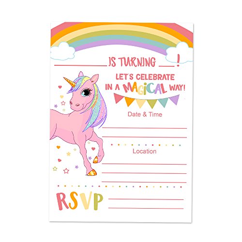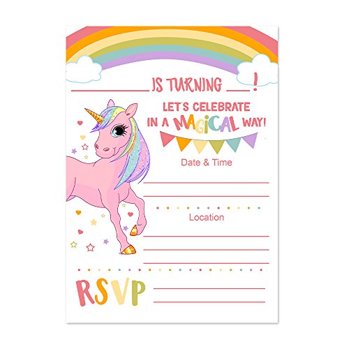 Unicorn Birthday Invitations for a Girl - 20 Ct. 5x7 Cards Printed on Front and Back - Rainbow Magical Unicorn Invitations