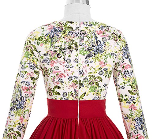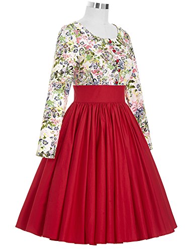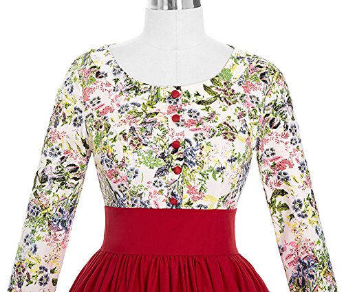 Title : Knee-Length Long Sleeve Floral Round Neck Pinup Vintage Tea Party Dresses (M) BP96-1