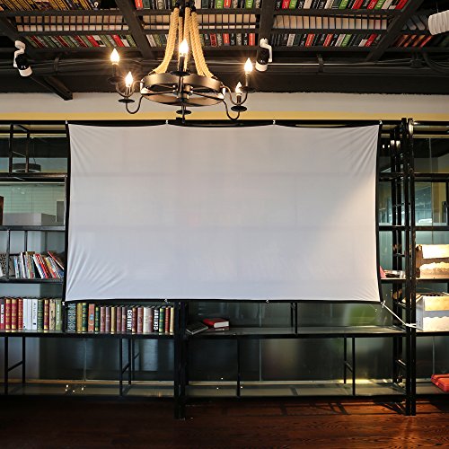 Screen?Size?104.25?inch?x?60.5?inch?(264.8cm?x?153.67cm).?Please?take?in?account,?because?it?is?flexible?material,?projection?material?sizes?may?vary?by? /-?0.5a€??in?length/width; View?size:?102.37?inch?x?58inch?(260cm?x?147.32cm); 120?inch; Ratio:?16:9; Material:?100%?Polyester. 6?eyeholes?on?the?screen,?with?6?pieces?peel-and-stick?hooks,?to?make?it?easy?to?set?up.
