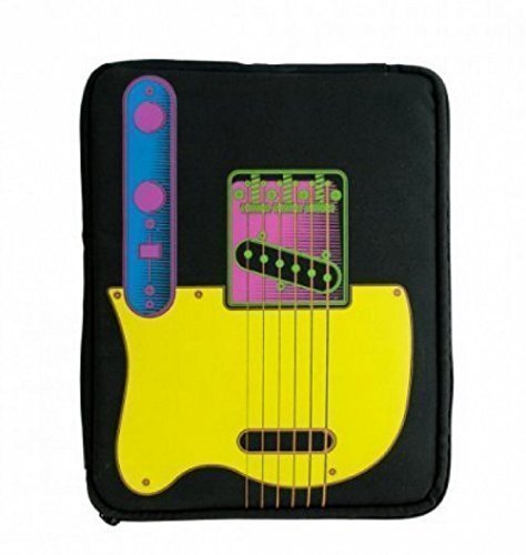 Help prevent cosmetic or surface damage to your device with this stylish Color Guitar 10" Tablet Case with External Zipper Pocket featuring a black padded polyester zipper case with a colorful, detailed print of a guitar on one side and an amplifier on the other.