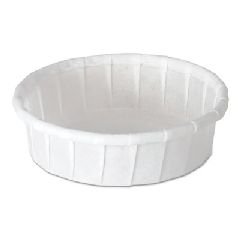 Treated, heavy-duty, multi-pleated paper cups hold up well against liquids. Rolled-wax rim maintains shape and tightness even when wet. Perfect for small servings of sauces and dressings?on premise.