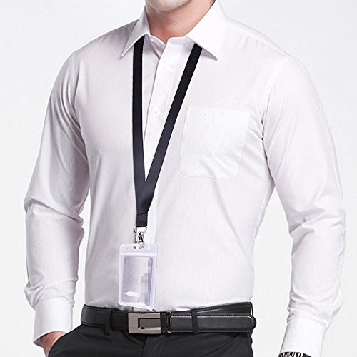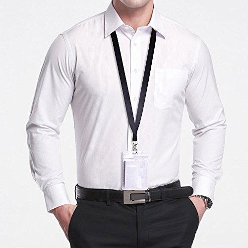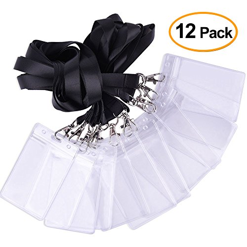 Kuuqa Vertical Name Badge Holder Badge Card Holder with Black Lanyard for Business and Exhibition 12 Pack