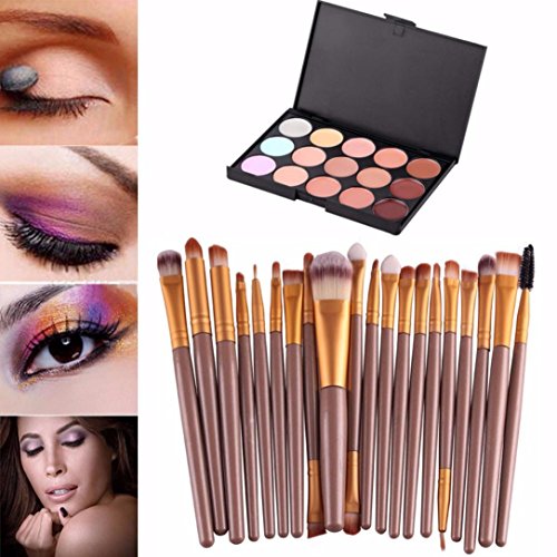 -. Feature : Pacage Included: 1*15 Palette Concealer 20pcs Makeup Brush Set / An extensive range of 15 multiple vibrant long wear concealer colors with different skin tones to create more than 10,000 amazing looks . Using the most commonly applied shades, ensures the best skin color match and guarantees a traceless and natural finish . / Enabling layering and mixing, provides total camouflage for almost any skin problem including blemishes, scars, birthmarks and black circles . The light color is suitable for redness, acne and so on . The medium color is perfect for dark shadows in the under-eye area . / The dark color provides exceptional camouflage and adheres well to the skin . Silky glossy color and high quality ingredients together to care skin around and can last for all day long , / Material: Wood (Handle), Nylon(Hair) Adopts high quality Nylon hair which provides superb ability to hold powder, soft and pleasing for your skin.