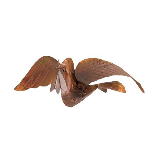 -. Brand : Ancient Graffiti -. Feature : Constructed of metal / Beautiful dove with an olive branch in mouth / Includes plastic loop to hang from any hook or tree / Available in a choice of finishes / Dimensions: 8.5W x 5D x 13H in. -. Label : Gold Crest Distributing LLC -. Manufacturer : Gold Crest Distributing LLC -. MPN : ANCIENT60227 -. PackageQuantity : 1 -. PartNumber : ANCIENT60227 -. ProductGroup : Lawn & Patio -. ProductTypeName : OUTDOOR_LIVING -. Publisher : Gold Crest Distributing LLC -. Studio : Gold Crest Distributing LLC -. Title : Ancient Graffiti Peace Dove Outdoor Sculpture
