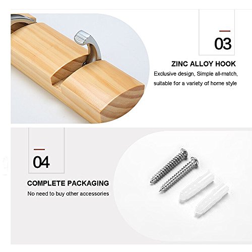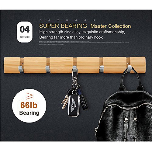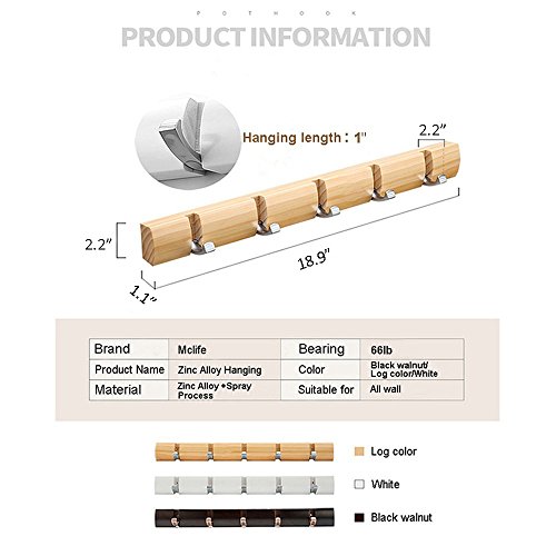 Mclife Wooden Material 18.9-Inch Invisible 5-Hook Hanger Coat Hook (Log color)