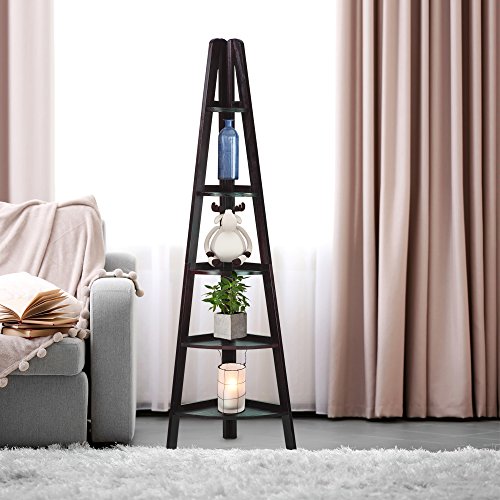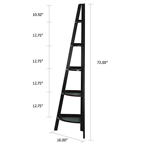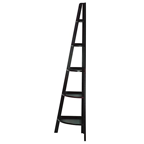 Made of solid wood.we've cornered the market on great bookcases.take a look at this five shelf corner bookcase.this ladder style corner bookshelf gives you storage room in an area that was going to waste - the corner of your room.this bookcase is perfect for books, collectables and more.assembly level/degree of difficulty, easy.Feature