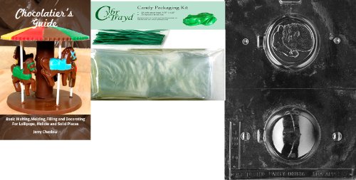 Cybrtrayd Christmas Ball, Santa Chocolate Mold with Chocolatier's Bundle of 25 Cello Bags, 25 Green Twist Ties and Chocolatier's Guide
