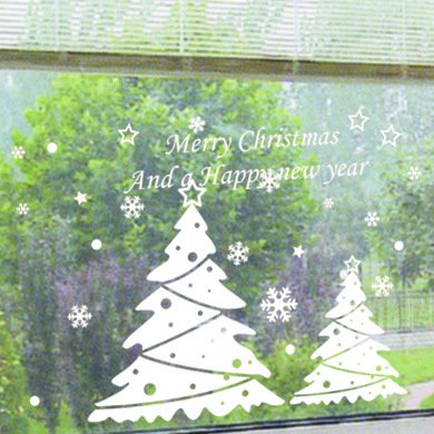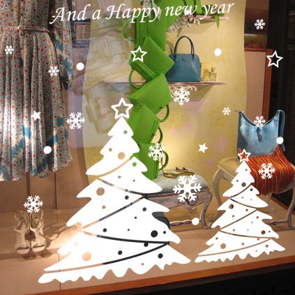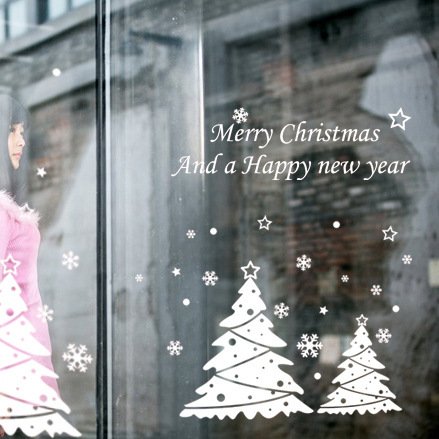 - Title : Oderin Art Decal Happy New Year Merry Christmas White Tree Snowflower Removable Mural Wall Stickers Art Cupboard for Christmas Shop Room Decor
