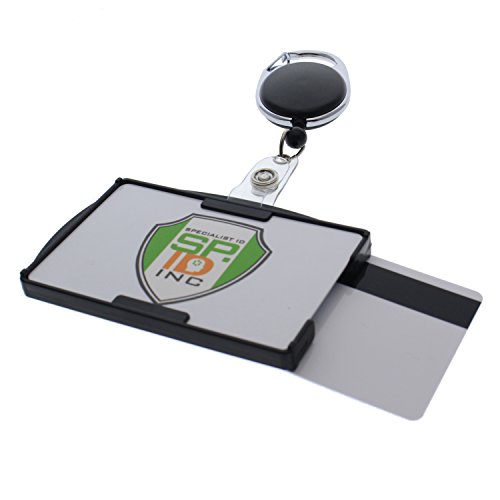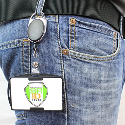 2 Pack - Premium Two Card Badge Holder - Vertical or Horizontal - with Retractable Carabiner Badge Reel by Specialist ID (Black)