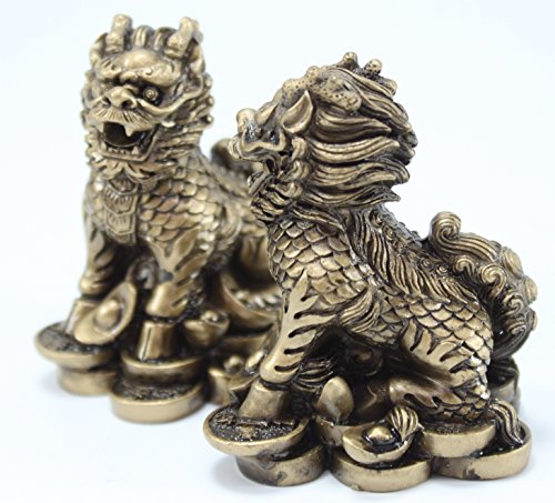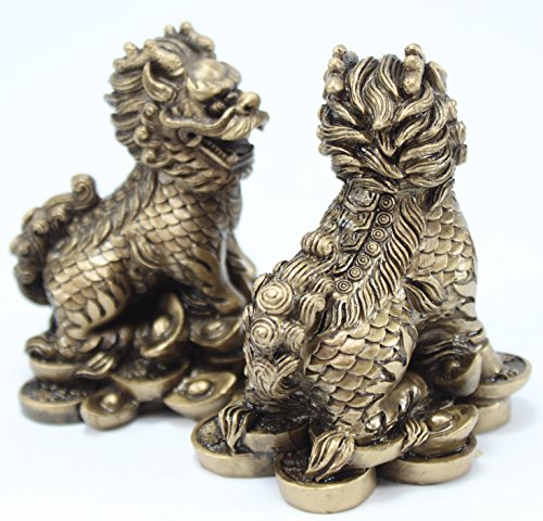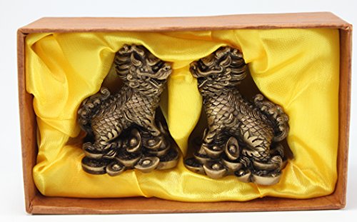 Feng Shui Gold Elegant Chi Lin Dragon Horse Wealth Lucky Statue Figurine Home Decor Housewarming Congratulatory Gift US Seller (Pair of 3" Chi Lin (O2075-2))