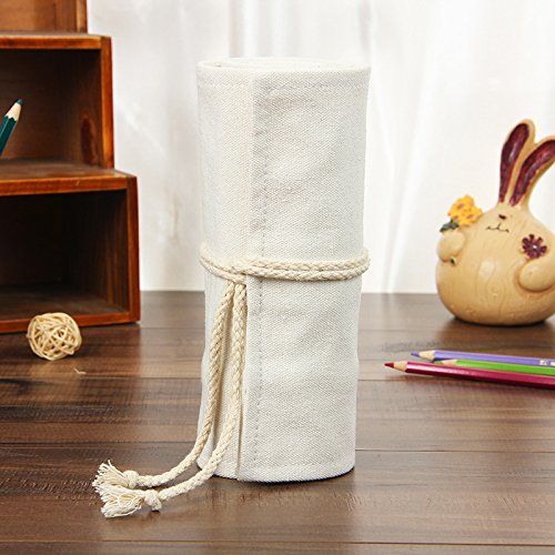 Colored Pencils Roll up Pouch Canvas Pen Bag (No Pencils Included) (36 Pencils, White)