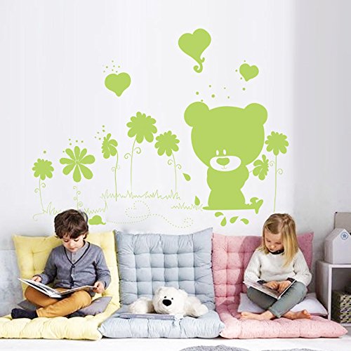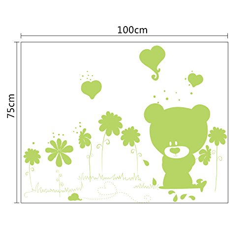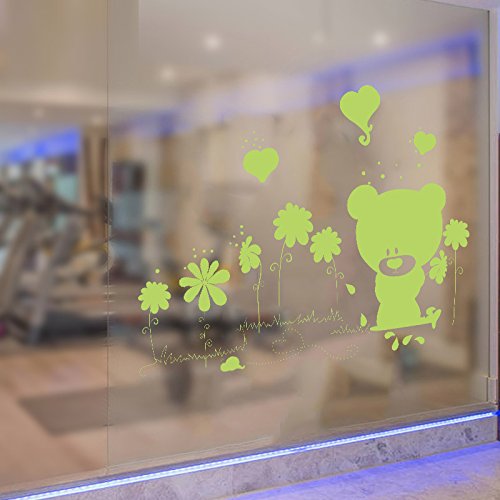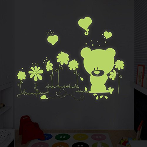 ufengke Bear Beautiful Flowers Wall Decals Fluorescence Stickers Glow in The Dark, Children Room Nursery Removable Wall Stickers Murals