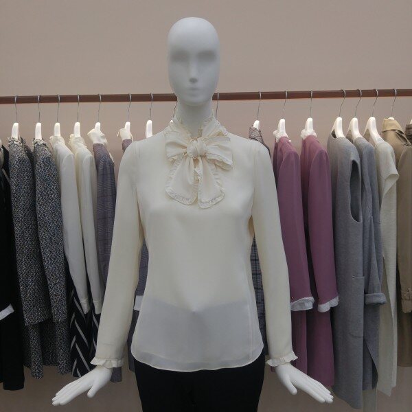 깔끔한 차이나? 블라우스입니다. 리본장식으로 또 다른 분위기를 연출하실 수 있으며 뒷지퍼가 있어서 편안하게 착장하실 수 있습니다.