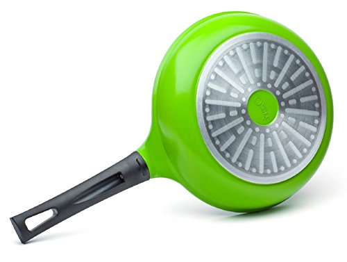 Utilizing pure ceramic as a coating, the Green Earth Pan by Ozeri is one of the world's first frying pans to achieve non-stick perfection while remaining absolutely free of PTFE, PFOA and other harmful chemicals. Conventional cookware and other ceramic cookware brands achieve their non-stick performance through a coating of PTFE (PolyTetraFluoroEthylene), a synthetic substance that has waxy properties. At very high temperatures, PTFE begins to decompose and release fumes which are documented to be lethal to birds and small pets, and which can be harmful to humans. In addition, traditional pans incorporating PTFE are often manufactured with the aid of PFOA (PerFluoroOctanoic Acid), which the EPA has classified as a 'persistent pollutant of the environment'. With the Green Earth Pan's ecozeri technology, even under high temperatures, such harmful toxic fumes are never released into the environment. This is because the Green Earth Pan by Ozeri utilizes a 100% ceramic coating inspired by nature. The Green Earth Pan's ceramic coating is completely free of PTFE and PFOA. In addition to being eco-friendly and ultra-safe, the Green Earth Pan's ceramic coating is far more durable and scratch-resistant than other non-stick surfaces. With better non-stick properties, the Green Earth Pan by Ozeri allows you to saute, fry, bake, boil and braise with as little as half the amount of oil normally used, and it makes cleaning a breeze. The Green Earth Pan by Ozeri is made of the highest quality die-cast aluminum that allows for even cooking and fantastic browning without the risk of hot spots. It boasts a magnetized bottom for rapid heat transfer on induction stoves, and a heat resistant Bakelight handle. Your satisfaction is guaranteed.Feature