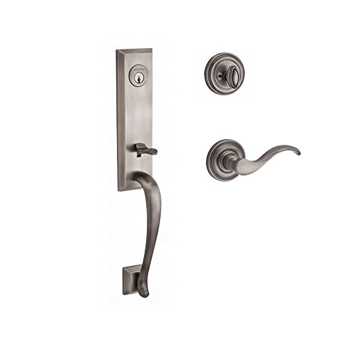 -. Title : Baldwin SCDELXCURRTRR152 Reserve Single Cylinder Handleset Del Mar x Curve with Traditional Round Rose in Matte Antique Nickel Finish Right hand