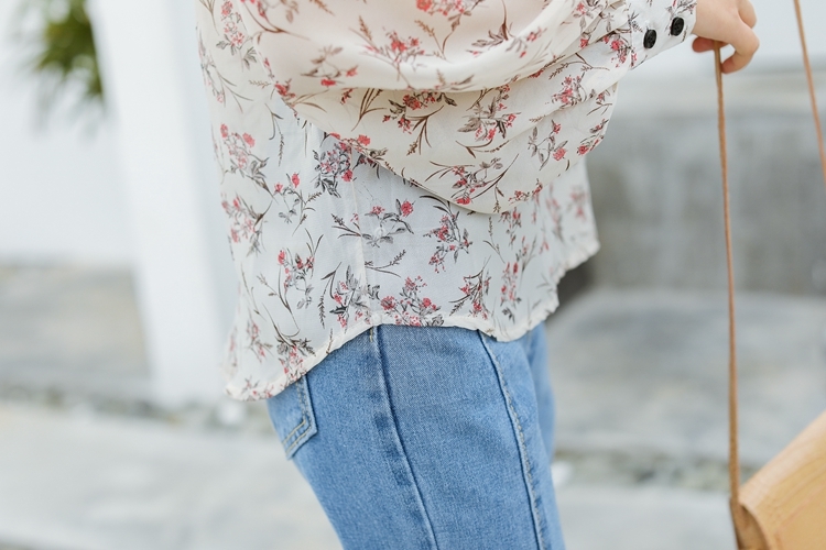 大人の女性らしい、落ち着いた花柄を全面にあしらったシフォンブラウスです☆