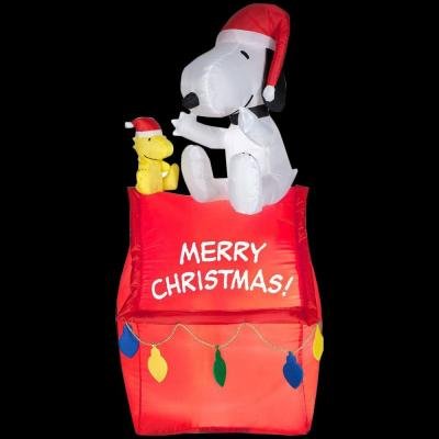 - Christmas Theme: Airblown Snoopy On House With Banner And Lights