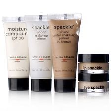 -. Title : Laura Geller - The Spackettes - Makeup Set - Moisture Compound Spf 30 .50oz + Spackle Under Make-up Primer .50oz + Spackle Tinted Under Make-up Primer in Bronze .50oz + Eye Spackle .14oz + Lip Spackle .14oz + Clear Case with Red Zip Lock