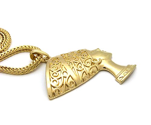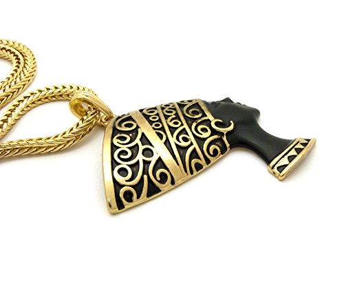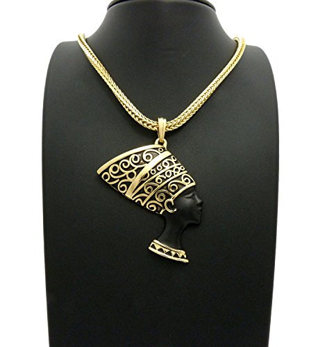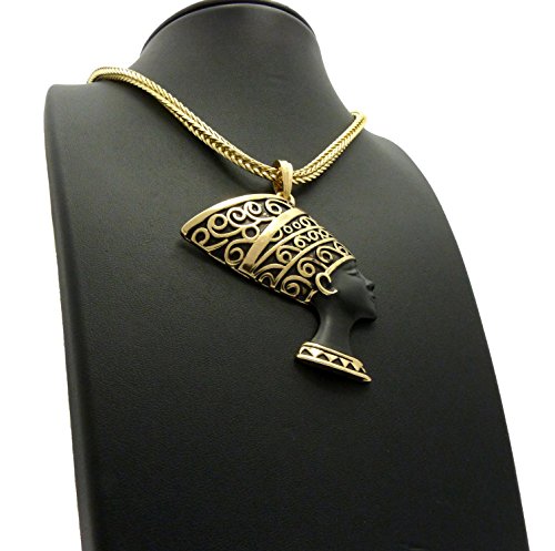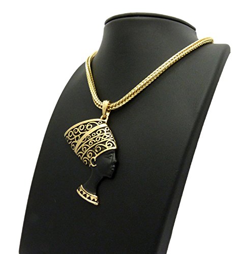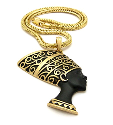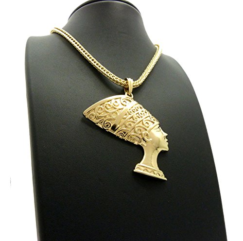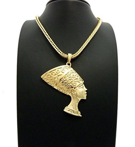 -. Feature : Egypt Queen Nefertiti Pendant 4mm 18" Franco Chain Necklace Gold Tone / Size of Pendant: 2.25" x 3.0" / Chain: 4mm 18" Franco Chain / Imitation Gold Tone Plated / Fashion Costume Jewelry