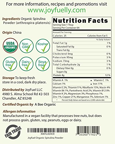Studio : Joyfuel Publisher : Joyfuel Binding : Health and Beauty Product Description Existing since the appearance of life in ocean and sea water this algae is packed with protein, vitamins, and minerals. The Aztecs combined "tecuitlatl" (spirulina) with cacao to create their own superfood. It packs quite a punch and doesn't take much to go a long way. 0