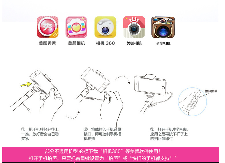 2PCS/LOT 5PCS/LOT Portable Folding Wired Mini Selfie Stick For iPhone 7 6 6s Samsung S7 S8 Note LG Sony XiaoMi Phone Monopod Built-in Shutter