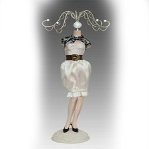 -. Feature : Display your favorite jewelry on this sweet dress form jewelry stand. The mannequin is made of poly resin and dressed in real fabric / not painted on. Easy assembly / no tools required. 10"H Gift boxed.