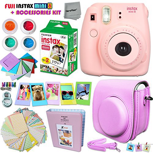 FujiFilm Instax Mini 8 Camera PINK + Accessories KIT for Fujifilm Instax Mini 8 Camera includes: 20 Instax Film + Custom Fitted Case + Assorted Sticker, Plastic & Paper Frames + Photo Album + MORE