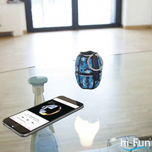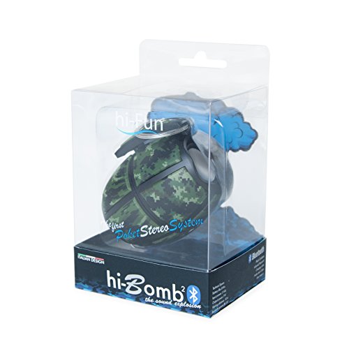 -. Binding : Electronics -. Brand : Hi-Fun -. Color : BLUE CAMOUFLAGE -. EAN : 8033844134398 -. Feature : hi-Bomb² Bluetooth is a powerful technological grenade ready to explode with music! / Frequency response: 20-20KHz Power: 3.7V Li-Battery Battery duration: 6 hours (play) 2 hours (charging) Bluetooth version: BT3.0 Amplifier power: 3W x2 Dimension: H 7,8cm - L 6,7cm - W 5,8cm Weight: 121g -. Label : HI FUN -. Manufacturer : HI FUN -. Model : HFHIBOMB2-CABL -. MPN : HFHIBOMB2-CABL -. PackageQuantity : 1 -. PartNumber : HFHIBOMB2-CABL -. ProductGroup : Speakers -. ProductTypeName : SPEAKERS -. Publisher : HI FUN -. Studio : HI FUN -. Title : HI BOMB2 Bluetooth Stereo Speaker