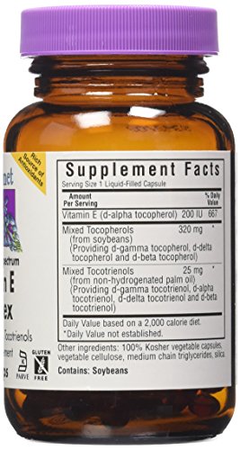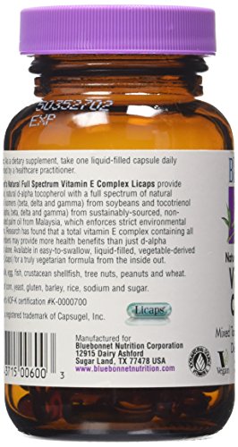 ReleaseDate : 2015-05-21 Studio : BlueBonnet Publisher : BlueBonnet Binding : Health and Beauty Product Description Bluebonnet's natural full spectrum vitamin e complex capsules provide significant amounts of the popular d-alpha and d-gamma tocopherols along with a complete mix of tocopherols from soybeans and tocotrienols from sustainably-sourced, non-hydrogenated palm oil from Malaysia, which enforces strict environmental regulations. Recent research has found that a total vitamin e complex containing all of the family members, including gamma tocopherol, may provide more health benefits than just alpha tocopherol alone. Available in new revolutionary, easy-to-swallow, liquid-filled, vegetable-derived capsules (capsules) for a truly vegetarian formula from the inside out. 0