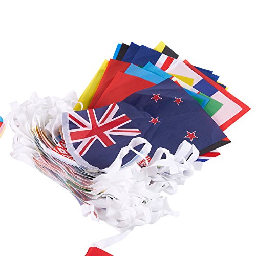 Juvale Set of 100 Country Flags - International Flags of the World, Party Decorations, 100 Different Countries, Assorted Colors, 80 Feet Length, Each Flag 5.2 x 9.2 Inches