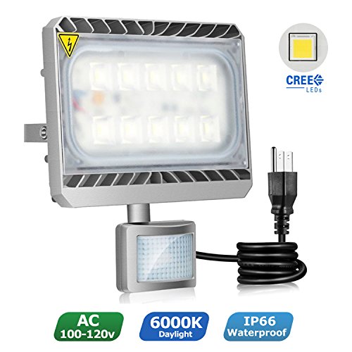 STASUN 50W LED Security Motion Sensor Outdoor Lights, Cree LED Source, 4750lm, 6000K Daylight, Waterproof Security Floodlights for Entryways, Stairs, Yard and Garage