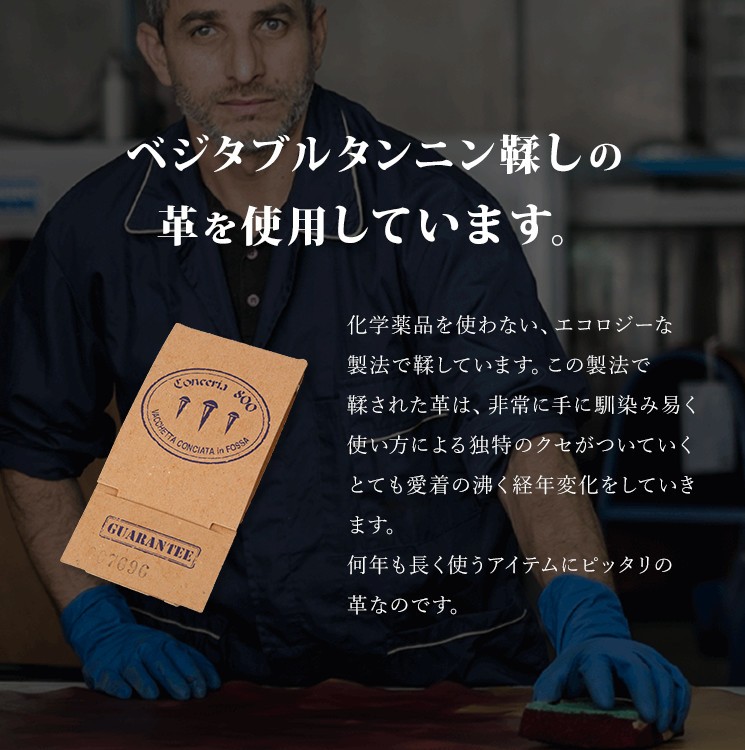 持ち主に合わせて馴染んでいくベジタブルタンニン鞣しの方法で鞣した革を使用しています。