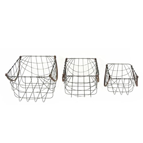 Sagebrook Home S/3 Metal Baskets W/Leather Handles S/3, 13.75x13.75x11, Gray