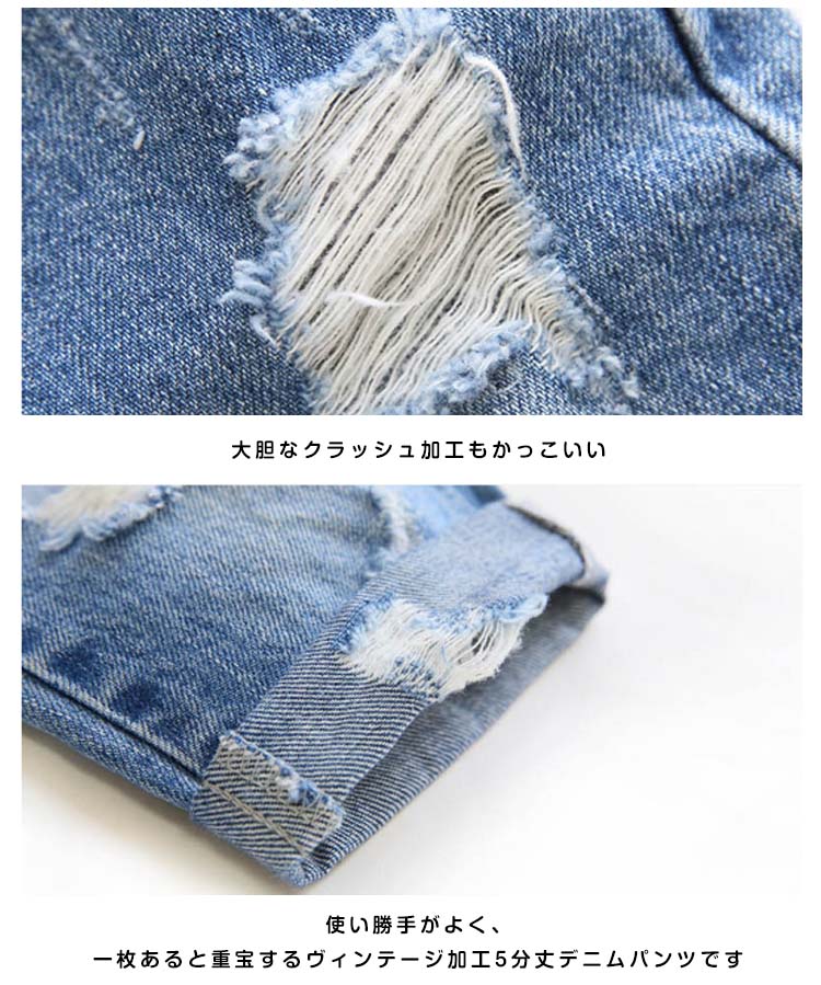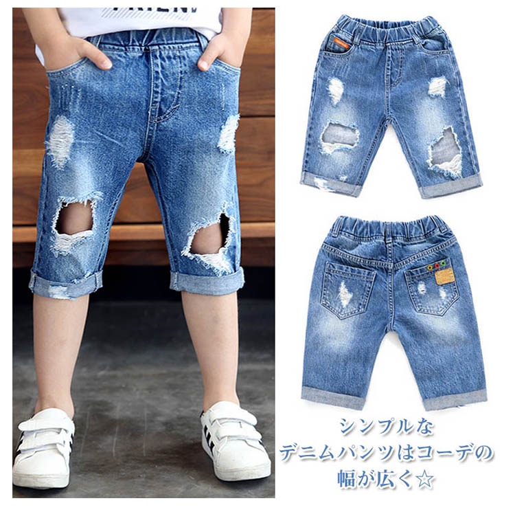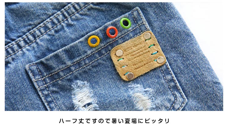 | シンプルなデニムパンツはコーデの幅が広く☆ 流行りのダメージ仕様でとってもオシャレ☆大活躍する事間違いなし!! 活発なお子様にピッタリのハーフジーンズ☆1枚持っていれば重宝するアイテム!!★ | |