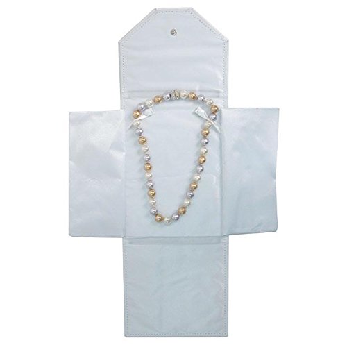 - These elegant necklace presentation folders are an excellent way to display and package necklace--especially pearls. Fasten your necklace with the tabs near the top of the folder, and fold the edges in, and secure with the snap closure. The inside of this leatherette folder is a soft satin, that will not only keep your jewelry from being scratched, but will also make it sparkle when on display. Jewelry not included.