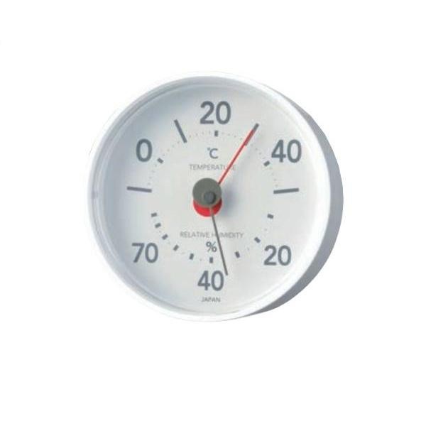 シンプルでかわいらしいデザインの温・湿度計。吸盤付なのでミラーなどにもピタッと貼付け可能です。