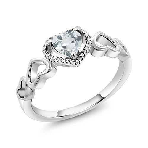 -. Title : 10K White Gold 0.58 Ct Heart Shape Sky Blue Aquamarine with Diamond Accent Engagement Ring (Available in size 5, 6, 7, 8, 9)