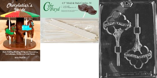 Cybrtrayd 'Happy Birthday Balloons Lolly' Kids Chocolate Candy Mold with 50 4.5-Inch Lollipop Sticks and Chocolatier's Guide