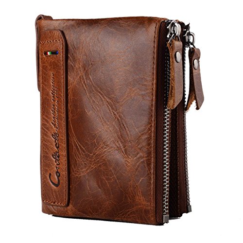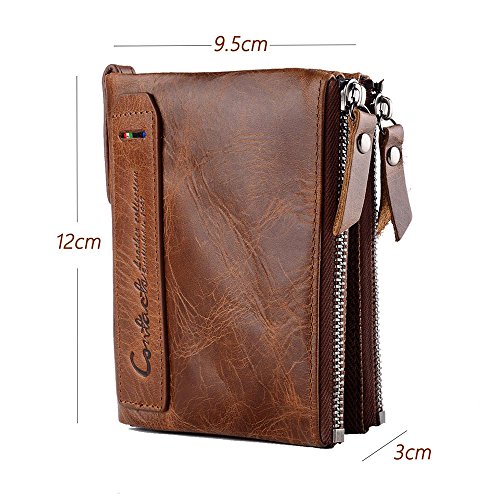 Binding : Apparel Product Description *** Perfect Gift for Men *** [Specifications] 4 card slots 2 of which are ID window 2 note compartments 2 coin packet 1 photo holder [Simple maintenance] -USE a colorless care cleaner or a leather cleaner, apply it on a clean cloth and gently wipe it on the leather. -After cleaning, place ventilation shade don't put under the sun, in case of high temperature broken your bag. -DO NOT use alcohol, turpentine or other minerals to wipe the leather. -DO NOT put in a moist environment to avoid mold, ordinary mold can be wiped with a towel. -DO NOT touch water and oil, rub the water with a clean dry towel immediately. Do not use a hair dryer on it. Instead, use thick microfiber hand towel and place your wallet to air dry. [Warm tips] --Due to different producing batches,there may be have deviation of 1-3 cm for item. --Colors on your computer monitor may differ slightly from actual product colors depending on your monitor settings. --Scratches on the surface of the leather is oil wax discoloration effect not man-made friction or poor quality of leather.If you want to remove the scratches,you can apply some horned oil to the scratches then rub by hand gently.When the horned oil is infiltrated inside the leather,the scratches will recover. [Package contents] 1 x genuine leather wallet [100% Money Back Guarantee] -If you have any problem with your wallet, please contact us for free. We will solve your problem and provide you a satisfied answer once we receive your message. -Absolute we support 100% money back.