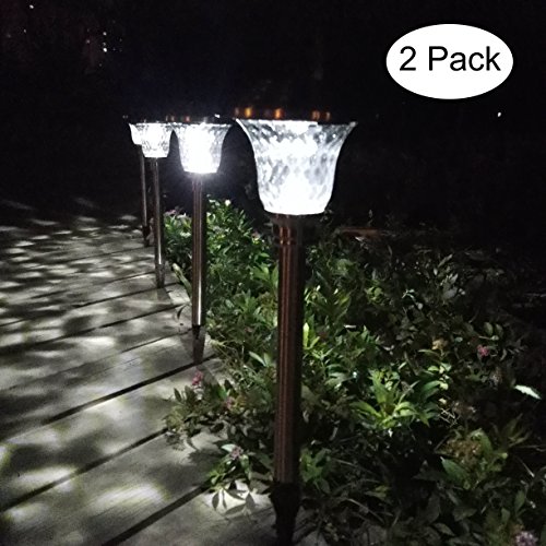 2 Pack Solar Lights Outdoor Garden Pathway Glass Lens Stainless Steel Waterproof Auto On/off Wireless Sun Powered Landscape Lighting Patio Lawn Walkway Driveway Ground Landscaping Bright Path Light