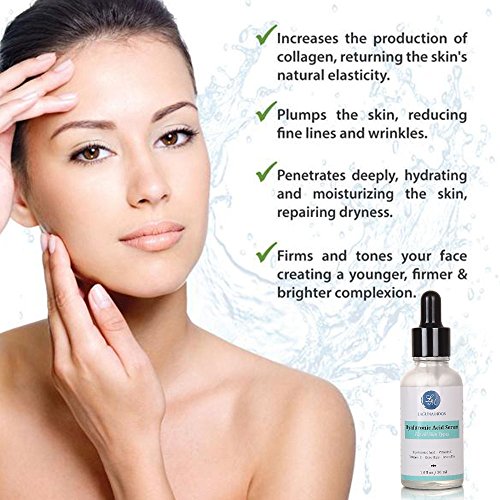 Hydrating facial moisturizer with 100 percent pure hyaluronic acid serum formula,increase the production of collagen, returning the skin's natural elasticity.