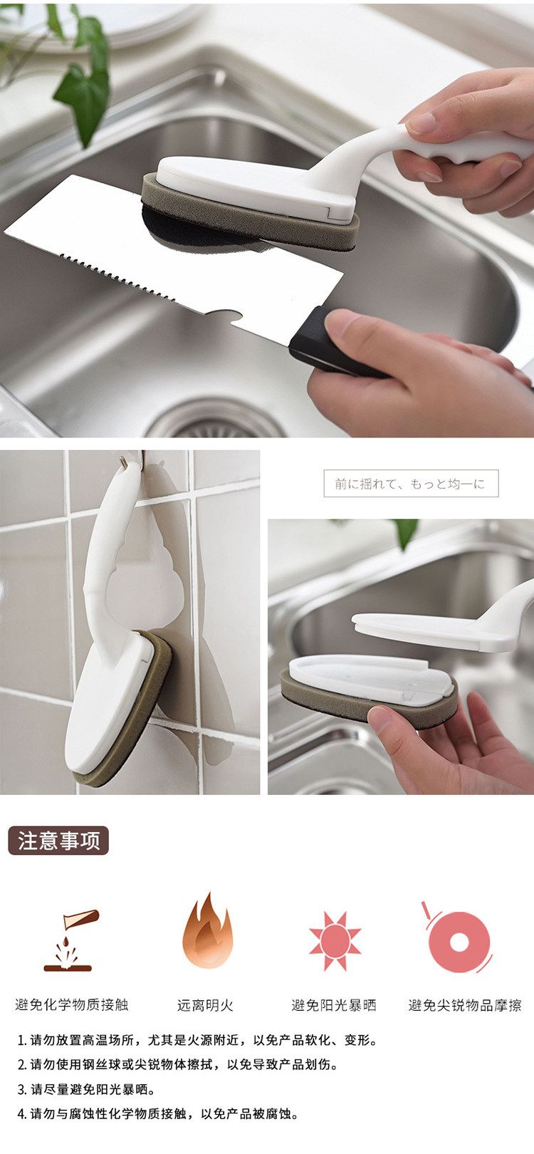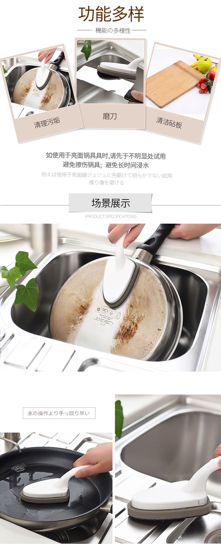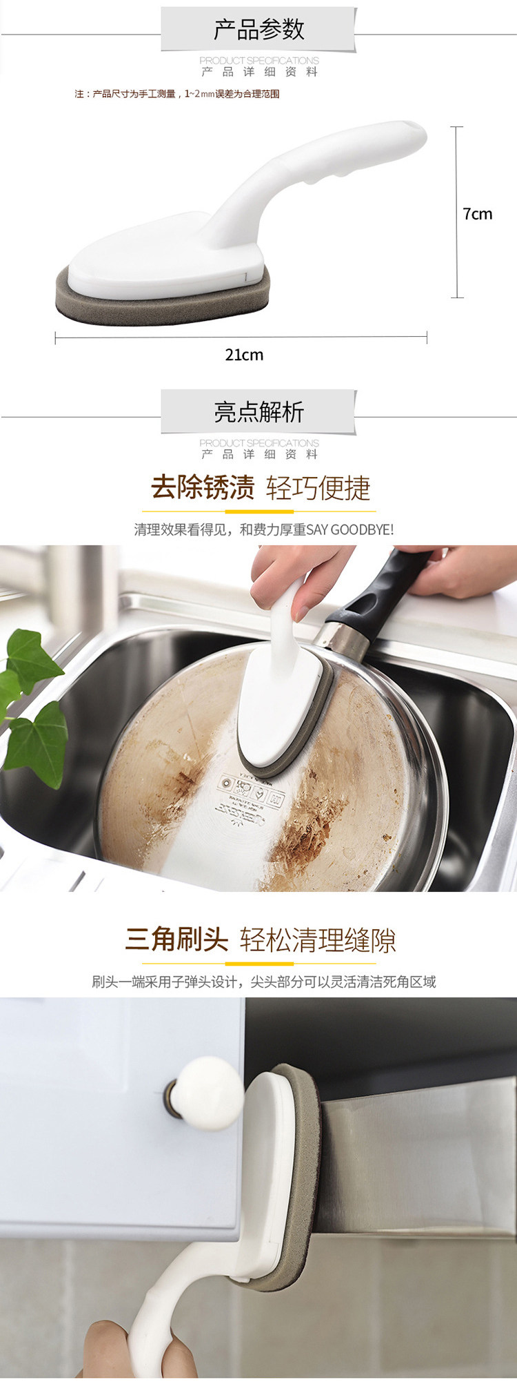 厨房洗锅刷长柄金刚砂海绵擦油烟机灶台去污锅底除锈清洁刷子